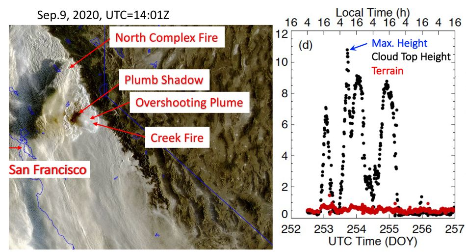 My favorite would have to be my current NASA ROSES New (Early Career) Investigator Program (NIP) project titled “Investigation of Wildfire Convection and Boundary Layer Dynamics with LEO-GEO and GEO-GEO Stereo-Imaging/Tracking Aerosol Plumes.” In addition to being a newly minted Principal Investigator, I get to work with a phenomenal team of scientists, professors, and students on a project that has the potential to improve wildfire and air quality transport model simulations.